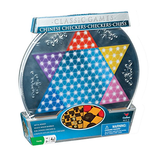 -. Feature : This set includes a distinctive metal Chinese checker board with marbles as well as complete chess and checkers sets with board. / Now the whole family can enjoy these timeless boardgames of strategy anywhere, anytime. / The Chinese checker board acts as a storage tin for the chess and checkers sets. / Choose from three different board games for hours of great fun for 2 or more players. / Recommended for ages 6 years and up. / Cardinal is committed to making family-friendly, challenging, and innovative games and puzzles, and has been providing a wide range of games to our customers for over 60 years. / In today's electronic world of computer games and social media, basic game play and puzzle construction are vital to kids of all ages. / From problem solving to developing memory and hand-eye coordination, Cardinal toys and games promote important attributes in kids. / Plastic - all playing pieces store inside two metal sides / 6 Years + Up