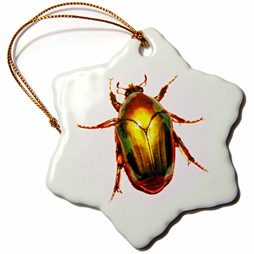 3dRose orn_155920_1 Golden Scarab Beetle Porcelain Snowflake Ornament, 3-Inch
