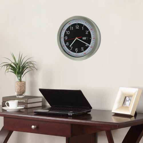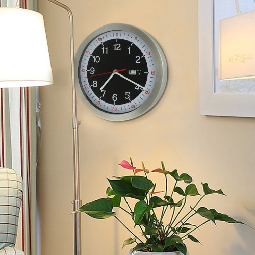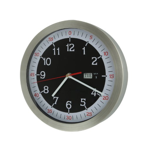 - Title : Adeco Stainless Steel Round Wall Hanging Clock with Date and Second Hand White on Black Home Decor