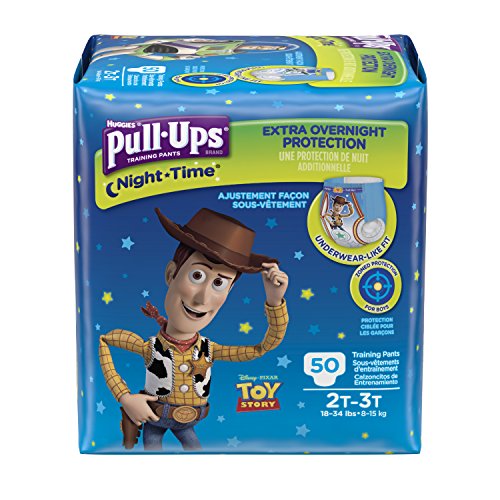Help make your potty training experience easier* with Pull-Ups Night*Time training pants, our most absorbent pants for extra overnight protection. With great coverage, soft and stretchy sides, and zoned protection, Pull-Ups training pants give your child a comfortable fit and all-around performance. And he will love the fun graphics featuring Disney's Miles from Tomorrowland. Pull-Ups pants have an underwear-like design that lets your child slide them on and off like underwear, plus easy-open sides for quick checks or changes. Pull-Ups Night*Time pants for Boys also have a wetness indicator that fades when wet to promote learning. Because every child responds to potty training differently, the Pull-Ups brand can help you put together a customized training plan to fit your little boy’s personality. Visit Pull-Ups.com to get started. Pull-Ups Night*Time training pants are available in sizes 2T-3T (18-34 lb.) and 3T-4T (32-40 lb.). Stock up for less when you use Subscribe & Save. (*vs. training in diapers)Feature