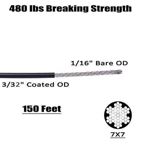 This Cable Bare OD is 1/16",Coated OD is 3/32";Breaking Strength is 480 lbs