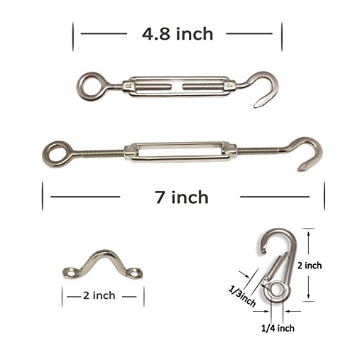 Turnbuckle Opened Length is 7",Closed Length is 4.8";wall mount hooks and snap hooks’ model number are M5;Wire Rope Clips Fit 1/16" Cable;