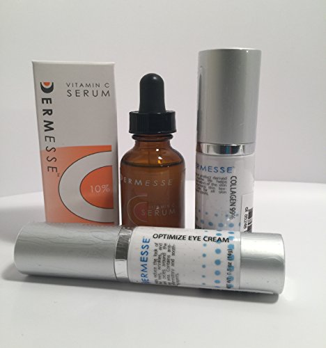 - Feature : For a Limited Time, Buy 1 Optimize Eye Cream & 1 Vitamin C 10% Serum and receive our NEW 99% Marine Collagen FREE. All presented together in an attractive cosmetic bag. / 99% Pure Marine Collagen, Pure L-ascorbic Vitamin C 10% Serum, Optimize Eye Cream / Stimulates collagen production and increases elastic fibers, reduces fine lines and wrinkles, enhances elasticity and smoothness of the skin, reduces dark circles and baggy eyes, reduces redness, reduces pore size / Medical Grade Skin Care Products No promises, just results! / Do you like Obagi? Then you'll love Dermesse!