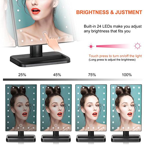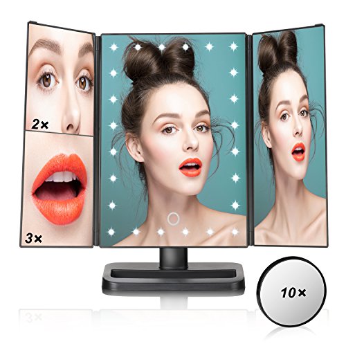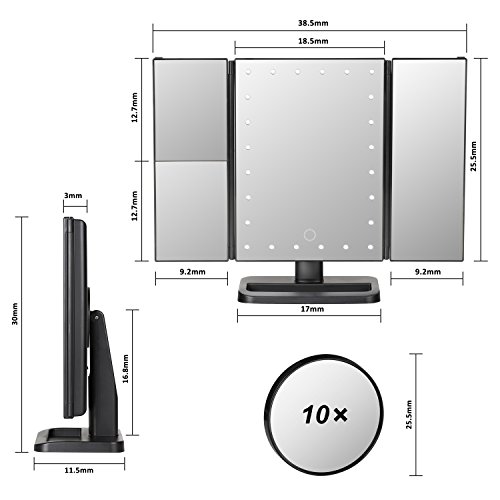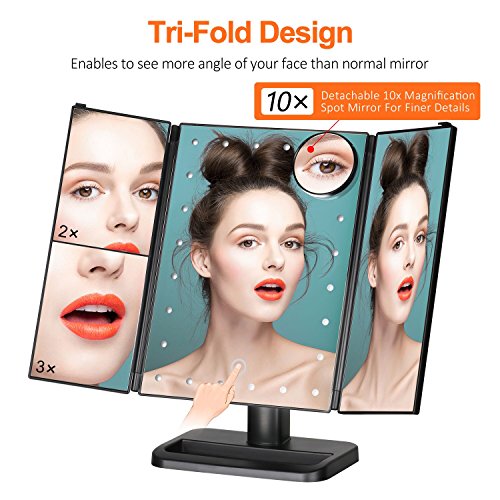 Vanity Mirror, TopDirect LED Makeup Mirror with 10x/3x/2x/1x Magnification, Trifold Lighted Makeup Mirror, Touch Screen, 180° Adjustable Rotation, Dual...