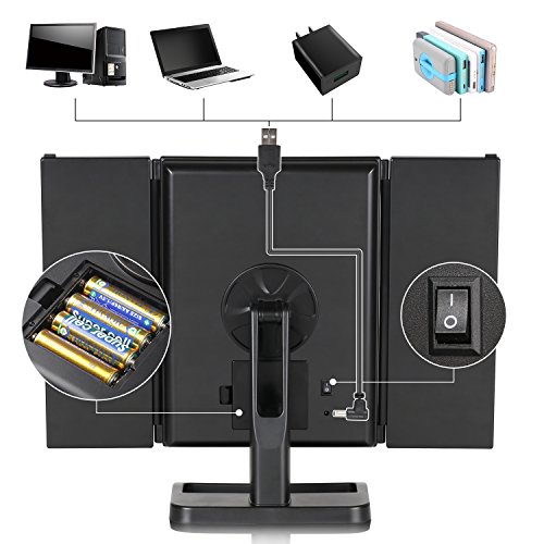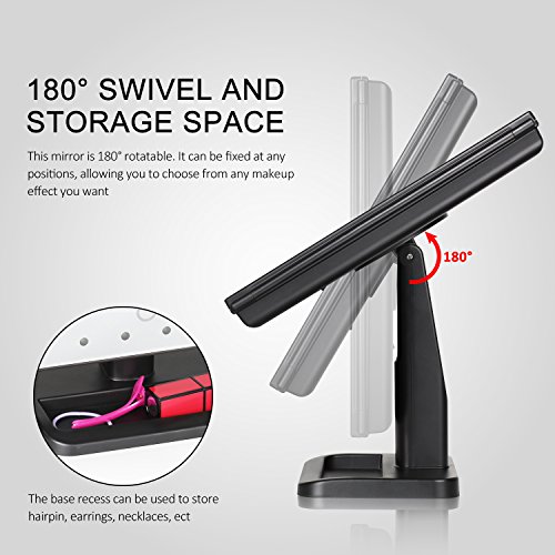 - Adjustable Viewing Angle: Perfect vanity makeup mirror with 180° up/down rotation allows you to view yourself from any viewing angle you want.