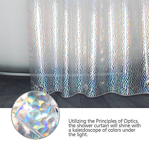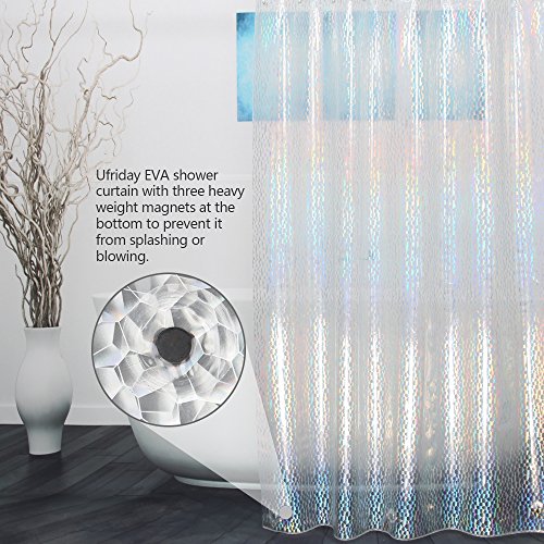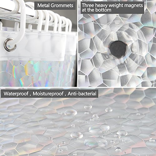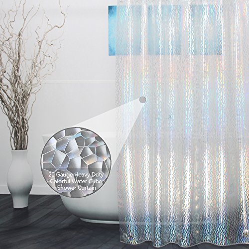 Ufriday EVA Stall Shower Curtain 54 x 72 with 3D Cube Water Cube Pattern Design, Semi-transparent 20 Gauge Sparkling Shower Curtain Liner with Magnets