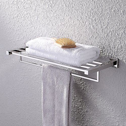 KES Towel Rack, Bathroom Shelf with Towel Bar (Polished 24 Inch Stainless Steel) Shower Organizer Contemporary Style Wall Mount, A21010