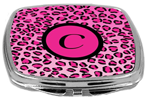 Rikki Knight Compact Mirror, Letter c Initial Hot Pink Leopard Print