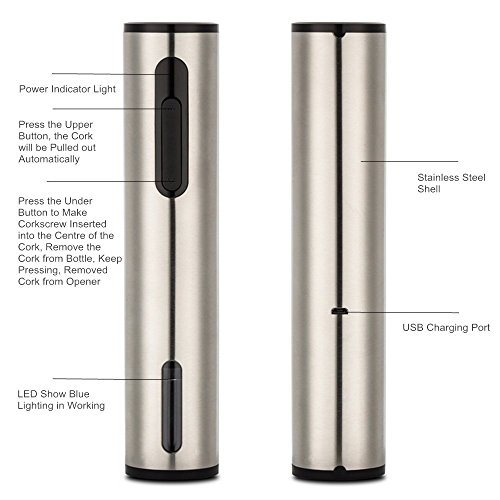 LIFU Wine Opener, Stainless Steel Electric Wine Bottle Opener Built-In Power Indicator with Foil Cutter