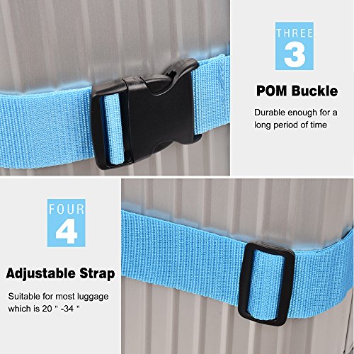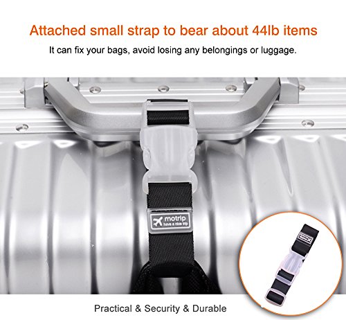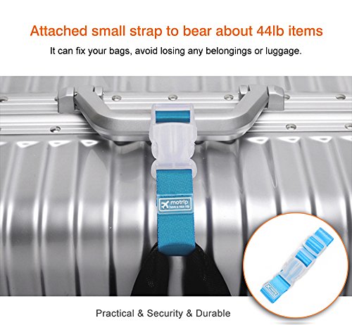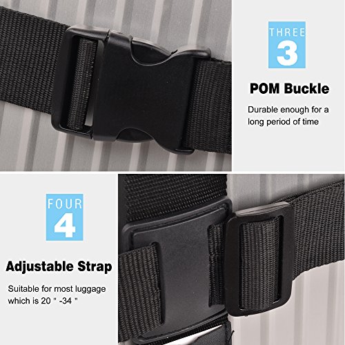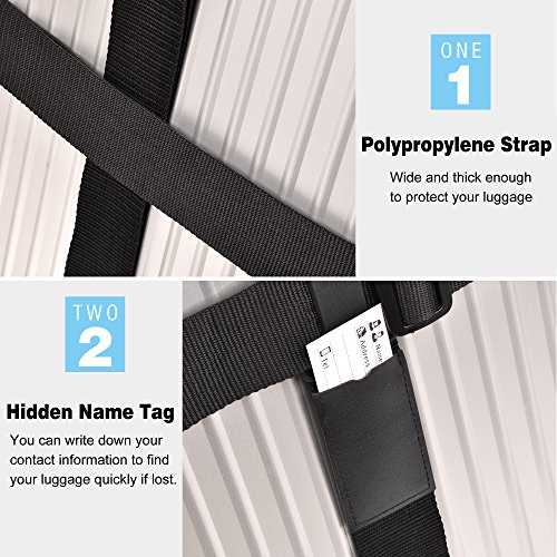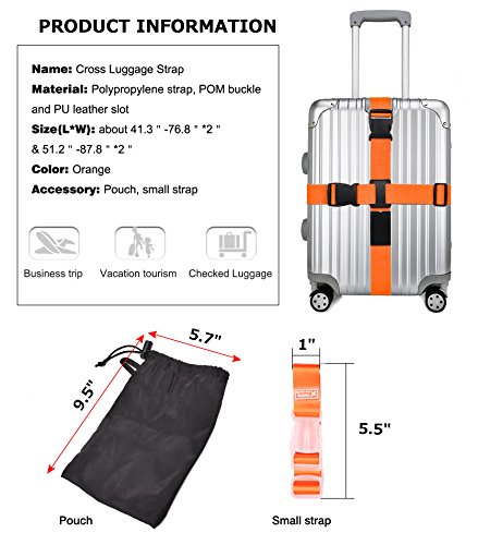 Humanization Design: *You don't need to put an additional luggage tag to your suitcase. *The cross luggage straps prevent your suitcase from opening or destroying. *The compatible range of luggage is from 20-34in, which can meet different requirements. *Attached small luggage strap allows you to carry more and free hands by connecting one bag to another.