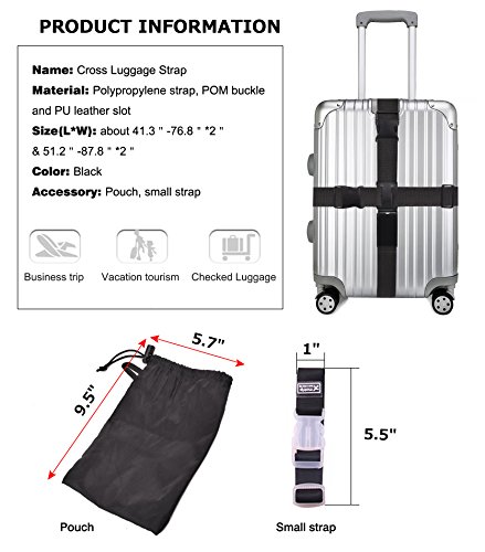 Product Specification *Material: Polypropylene, POM, PU leather *Color: Black *Weight: 0.5lb *Suitable Luggage Size: 20in-34in *Package Included: Luggage strap * 1; Pouch*1; Small luggage strap * 1