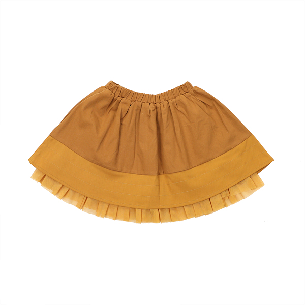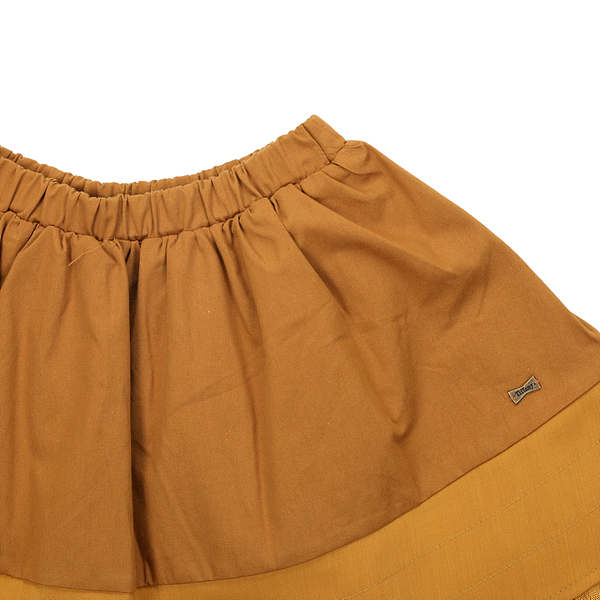 상세설명- 가지소재를 믹스한 블럭느낌의 스커트로 안쪽에 샤망처리하여 여아스럽고 사랑스러운 느낌의 스타일을 보여주는 아이템이다.
