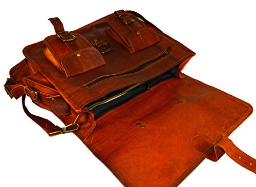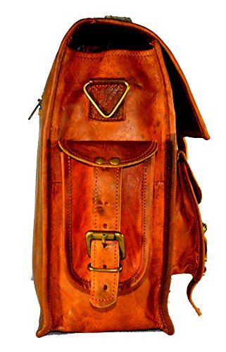 -. Feature : Classic retro style bag.This bag has enough room for your books, laptop, files and other essentials. Leave an impression on your colleagues and your friends by this classic unisex bag. / Carry your attitude on your sleeve with this stylish retro leather messenger bag. Handcrafted skillfully with three internal compartments and canvas lining inside, this compact bag manages to give you your bit of space without missing out on style which speaks volumes. Worked with genuine leather, this timeless bag proves to be your answer to wrinkles and everyday questions. / Please note that since this is original leather bag it comes with a distinct smell which fades away after 3-4 weeks of regular use. / Also the leather might feel a bit stiff in the starting but it loosens out with usage. / Genuine Leather