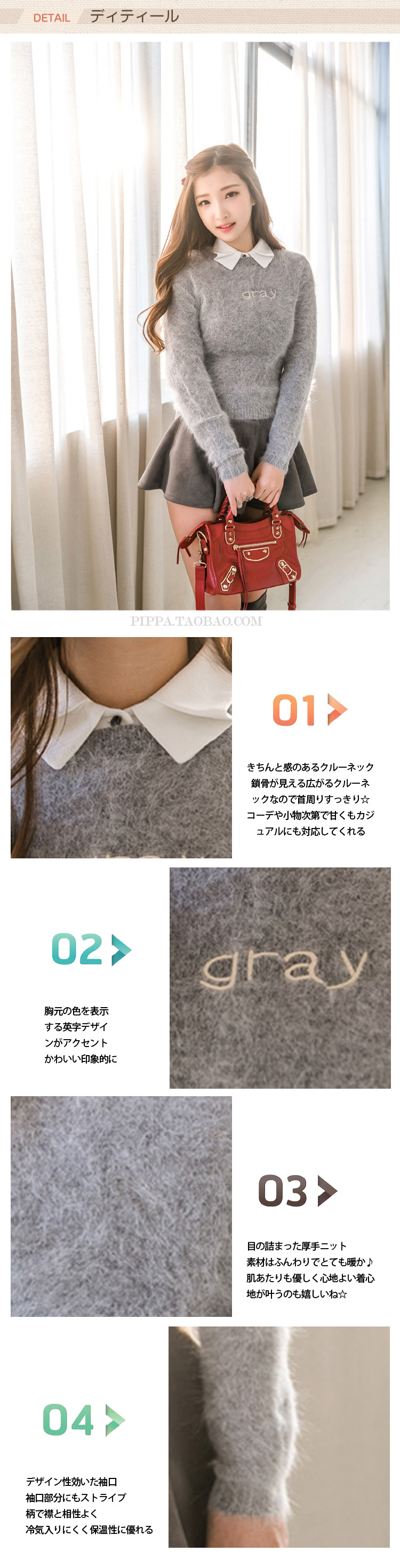 | この絶対冬ハズせないショートトップスに、ソフトで温かい素材が登場?ふんわりとしたニット地が女の子ムードをグッと盛り上げてくれるのが魅力的☆フレアスカートやペンシル、ハイウェストボトムなどとも好相性?どんなSTYLEにも相性抜群のベーシックデザインもうれしいポイント!アウターにも響きにくいので今の時期にはモチロン、春まで使えるおすすめアイテム?デイリーにもキレイめにも対応できる優秀な一着です!! | |