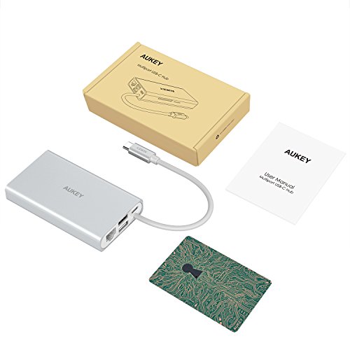 Package Contents: AUKEY CB-C55 Multiport USB C Adapter, User Manual, 45-Day Money Back Guarantee and 24-Month Product Replacement Warranty Card