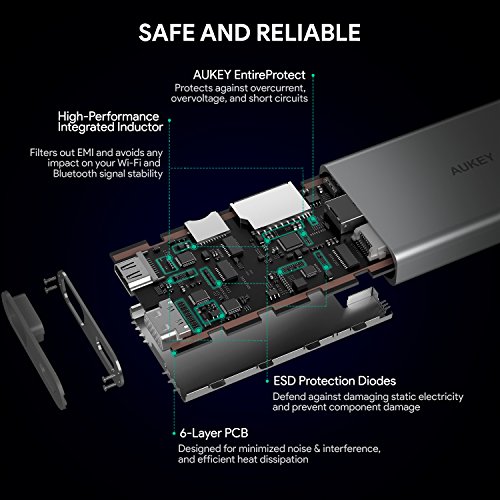 AUKEY EntireProtect Built-in safeguards protect against overcurrent, overvoltage, and short circuits. Advanced shielding also prevents interference with your Wi-Fi and Bluetooth connections.