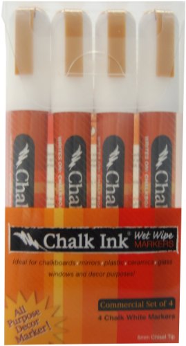 Chalk Ink 6mm Commercial Wet Wipe Markers, 4-Pack