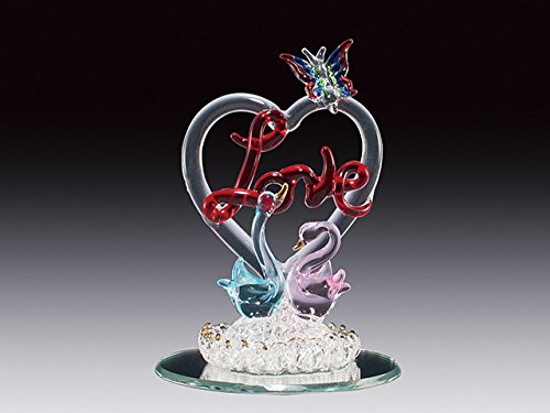 Blown Glass "Love" in Heart with Swan Lovers and Butterfly Figurine Collectible 4 Inches Tall
