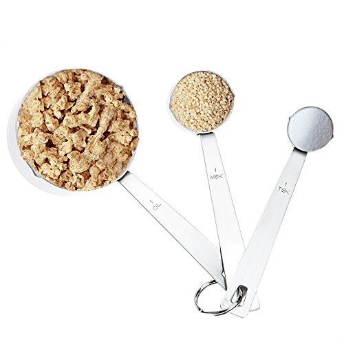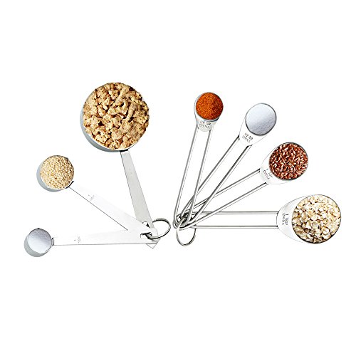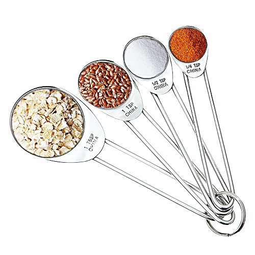 ✔THOUGHTFUL DESIGN : Innovative cupped and rounded spoon heads allows reaching into spice jars and other small containers without spilling out.With each measurement is engraved on the handle of each spoon, there's no guesswork when adding spices to your dishes.