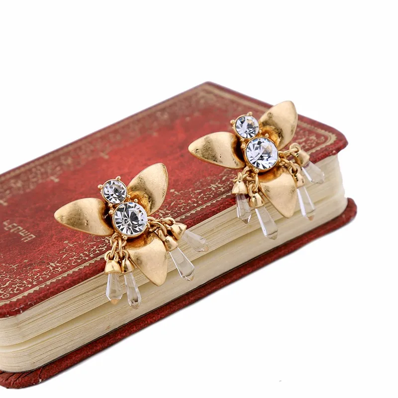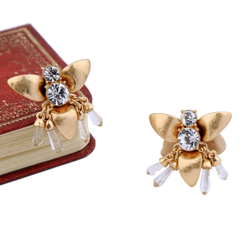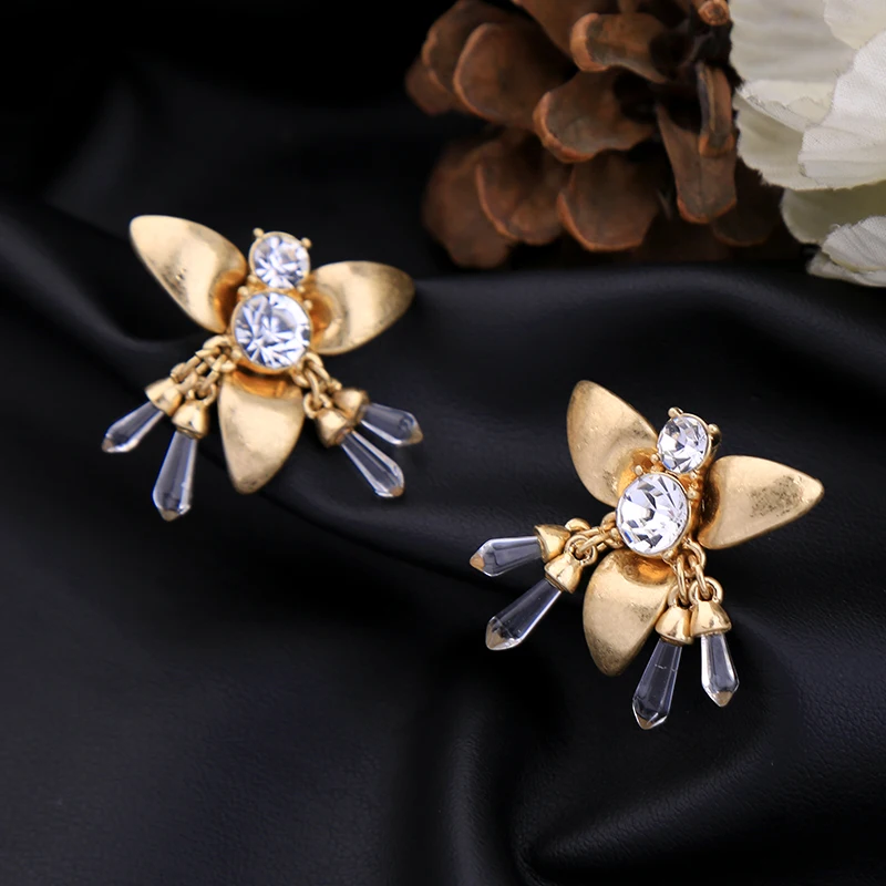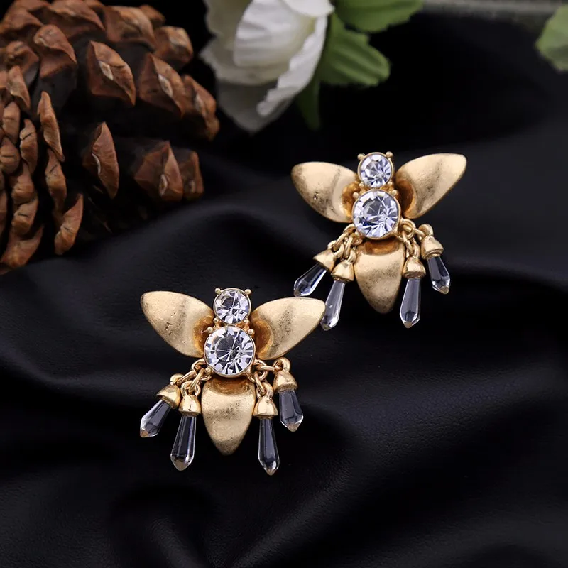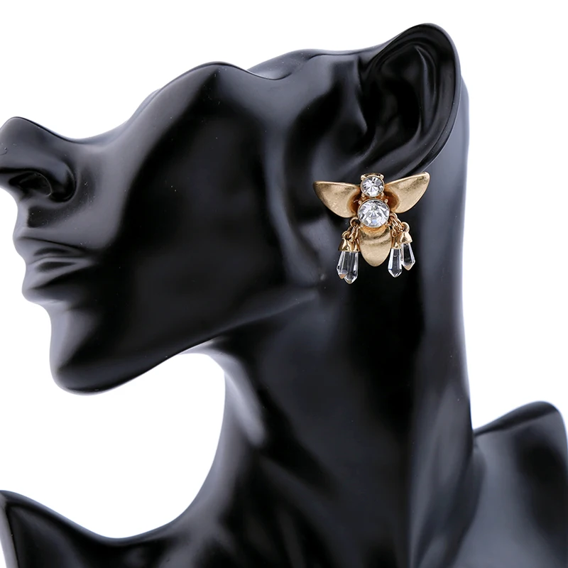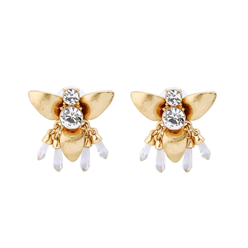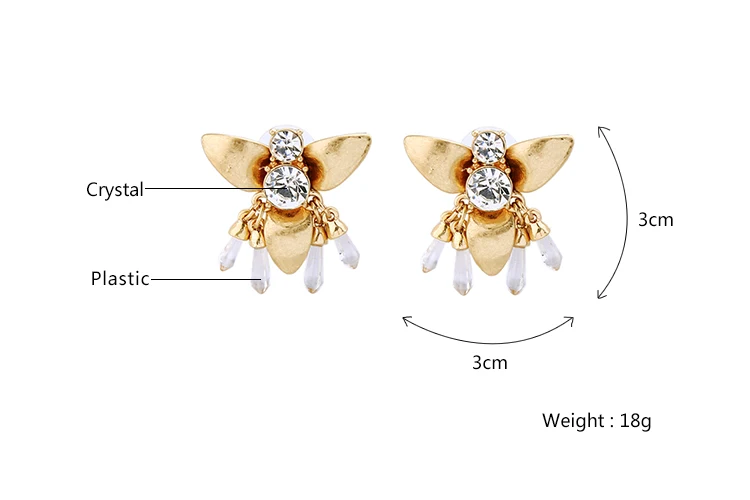 Production name ::Insect Jewelry New Alloy Crystal Bee Women Stud Earrings