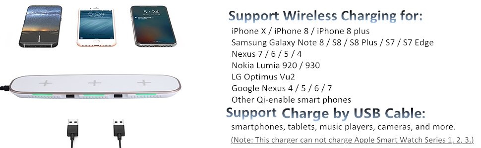 3.This wireless charge can not charge apple watch.