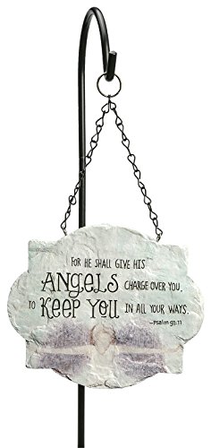 C.R. Gibson Garden Plaque With Metal Chain Hanger And Shepherd Hook, Plaque Measures 7.75" x 6.5", Hook Stands 36" Tall - Angels