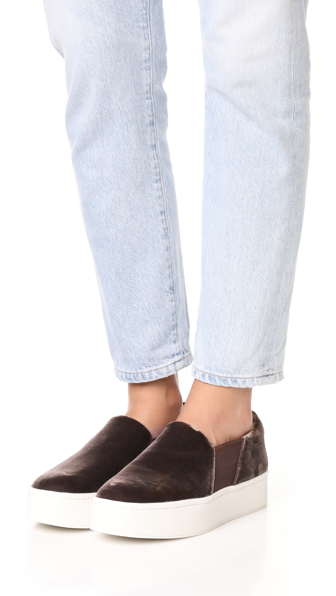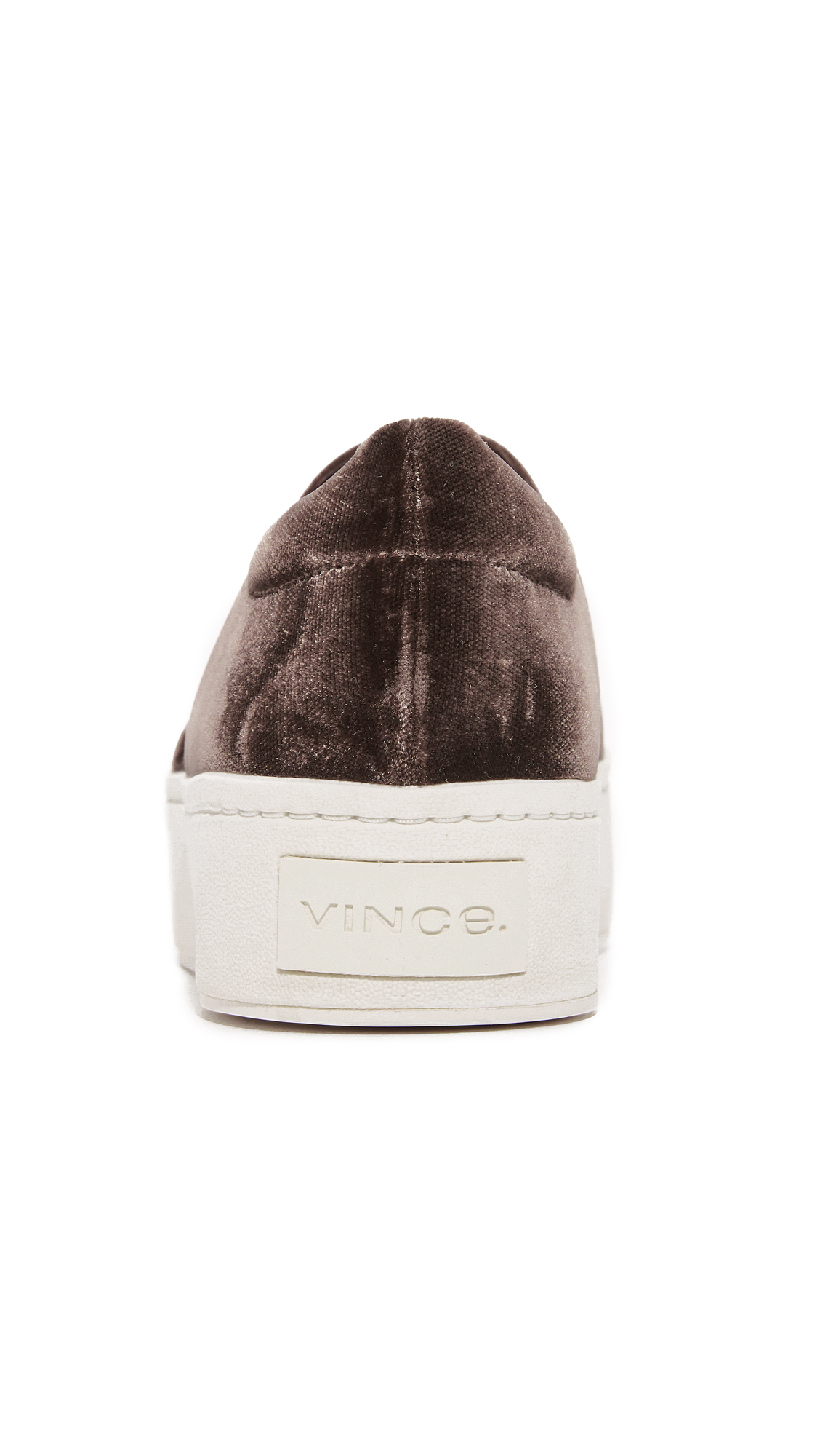 Tonal elastic insets accent the sides of these plush velvet Vince slip-on sneakers. Padded collar. Rubber platform and sole.Fabric: Velvet.Imported, China.This item cannot be gift-boxed.MeasurementsPlatform: 1.25in / 30mm