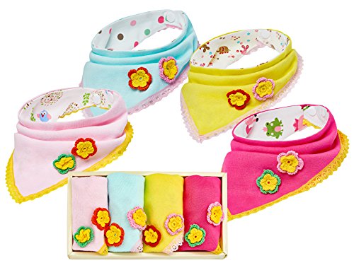 -. Title : Best Drool Bibs for Drooling and Teething - 100% Organic Cotton Girls Bandana Bib - 4 Pack, Perfect Baby Gift Set