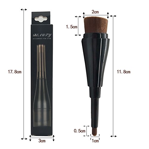 this is a unique brush .The brushes are made up two parts , one of the head is lipbrush and another is foundation brush.we make the lid to cover it. so this makeup brush is using at home and travel that is very convenient