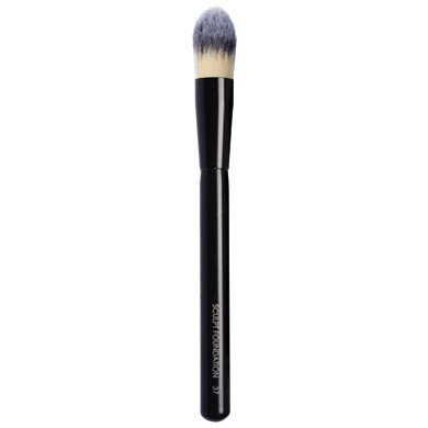 - The round, angled shape provides even application of both powder and cream formulas, while the white synthetic tips buff out color for a porcelain-smooth finish.
