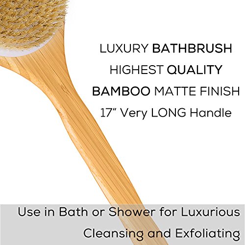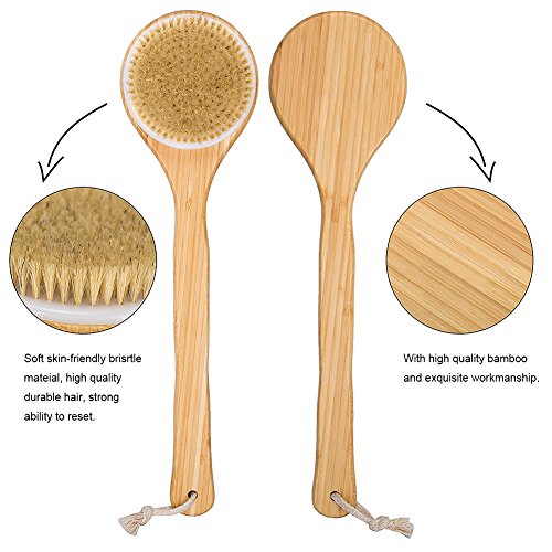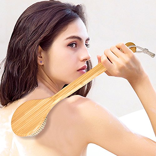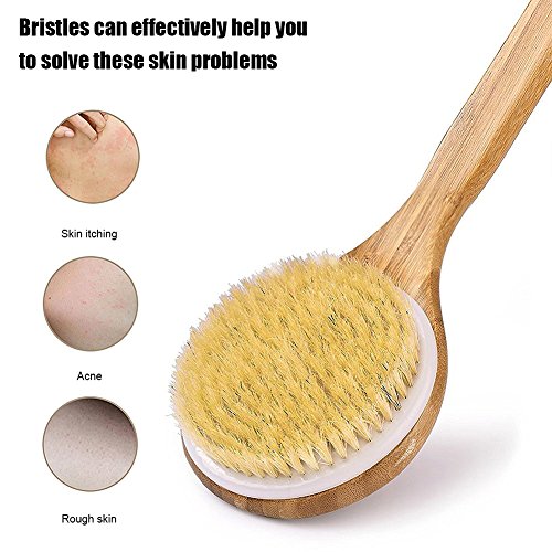 - √【ALL NATURAL】:Brush handle is made of smooth polished wood. All 100% Natural Bristles are of the finest grade which are more than 5cm hair that grow above the neck and back of the pig. They are tough and flexible, not easily deformed, resistant to moisture, free from hot and cold water and will not scratch skin.can be used for dry skin too.boost circulation and promote skin health and glows, increasing skin elasticity.