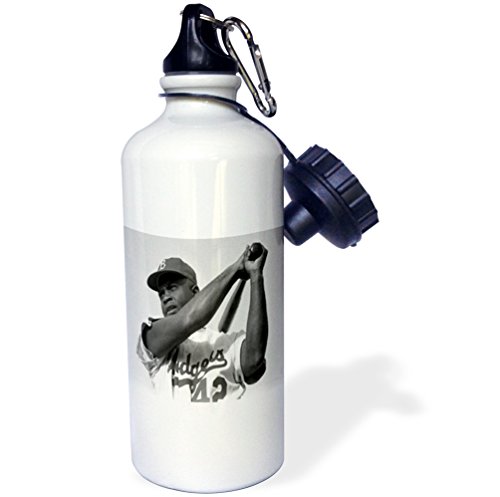3dRose wb_80393_1 "Picture Of Jackie Of The Brooklyn Dodgers" Sports Water Bottle, 21 oz, White