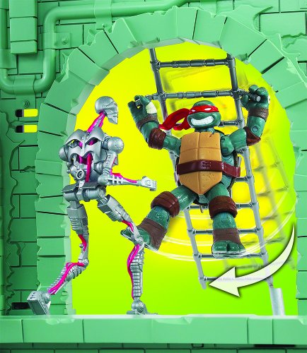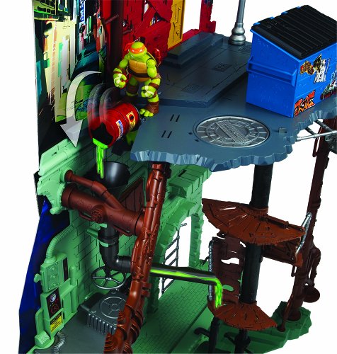 Die Teenage Mutant Ninja Turtles Secret Sewer Lair ist ein riesiges Spielset. Dieses fünf Stöckige Turtles Versteck ist mehr als einen Meter hoch und ist mit spannenden Features verpackt. Der Sewer Lair ist der perfekte Ort um mit Ihrem 12cm Turtles Figuren (separat erhältlich - keine im Lieferumfang enthalten) zu spielen. Es ist geeignet für Kinder ab vier Jahren.