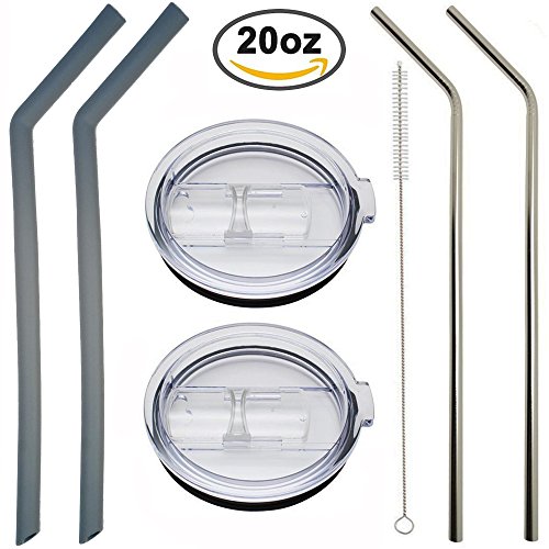 Ggb - 20 oz Tumbler Lids for Yeti Rtic Ozark 20 oz Lid Silicone & Stainless Steel Straws 7 Piece Kit Fits 10 oz / 20 oz Tumblers Lid Sliding Closure for Sipping or Straws
