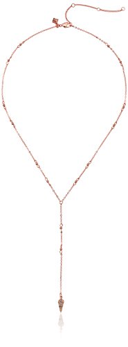 Gold, rhodium, or rose gold plated y necklace with beaded chain and pavé spike charm
