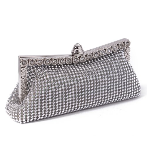 -. Title : Damara Womens Dimple Mesh Crystals Mini Clutch Evening Bag