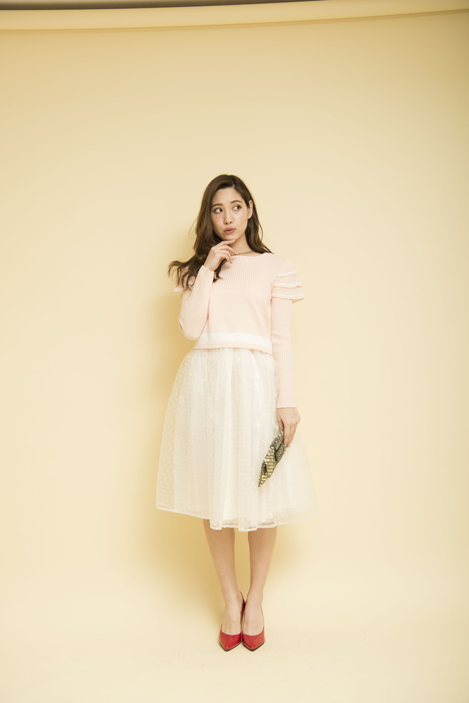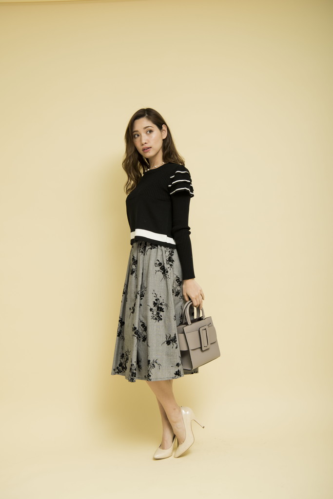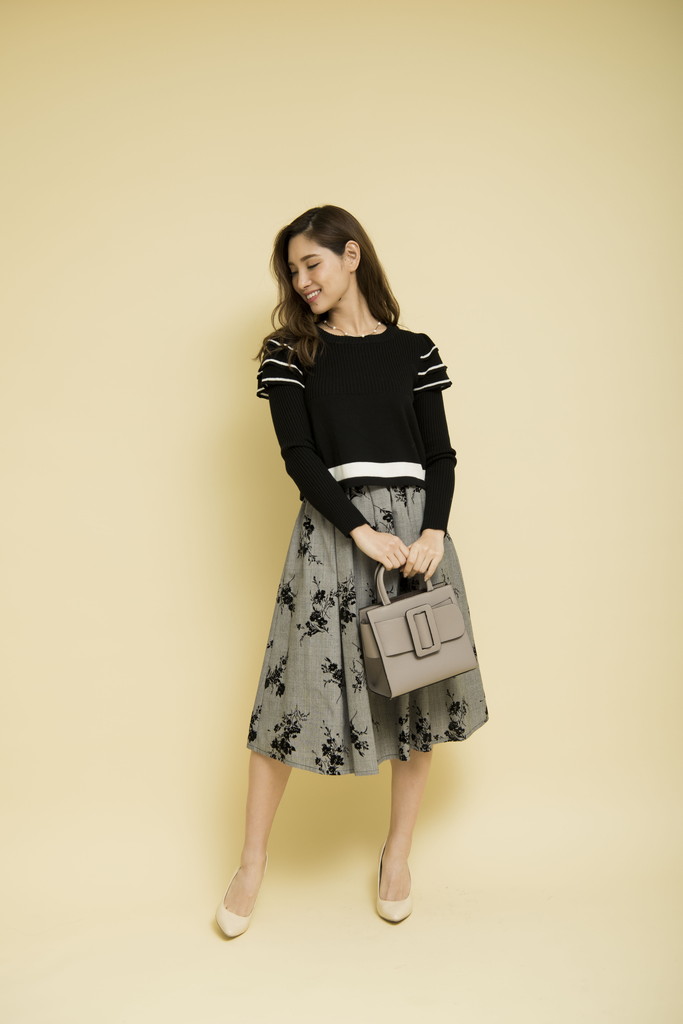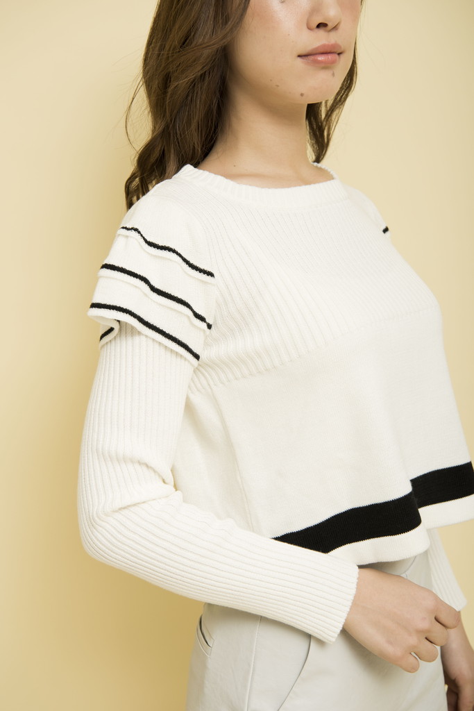 Concept : RADIANT WOMAN品のある女性らしさを大切にしながらも、いつもどこか華やかでありたいトレンドを敏感にキャッチし、 自分らしく新しい着こなしを探している自由な思考をもった華のあるエイジレスな女性そんな女性の日常を輝かせるChicで、Playfulなアイテムを提案ショルダー部分があぜ編みフリルになっているニットTOPS。ラインが入っているので程良いカジュアル感が着回ししやすいので◎