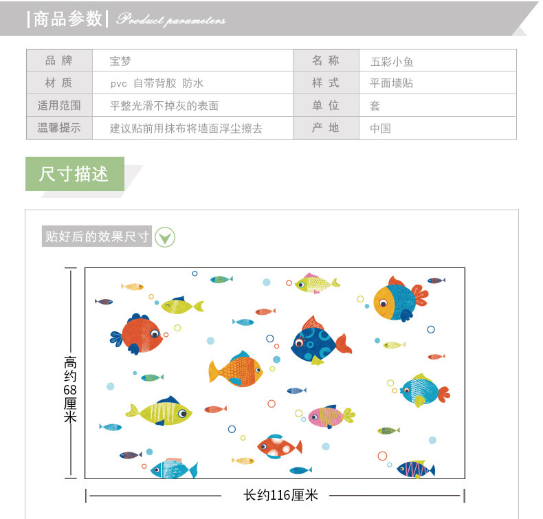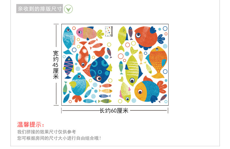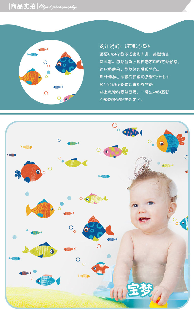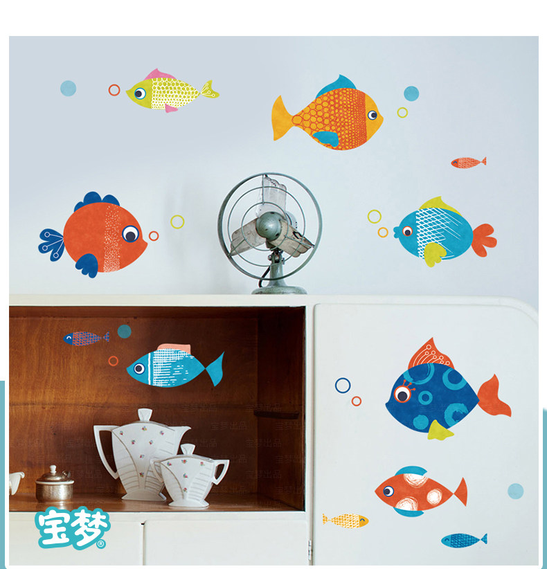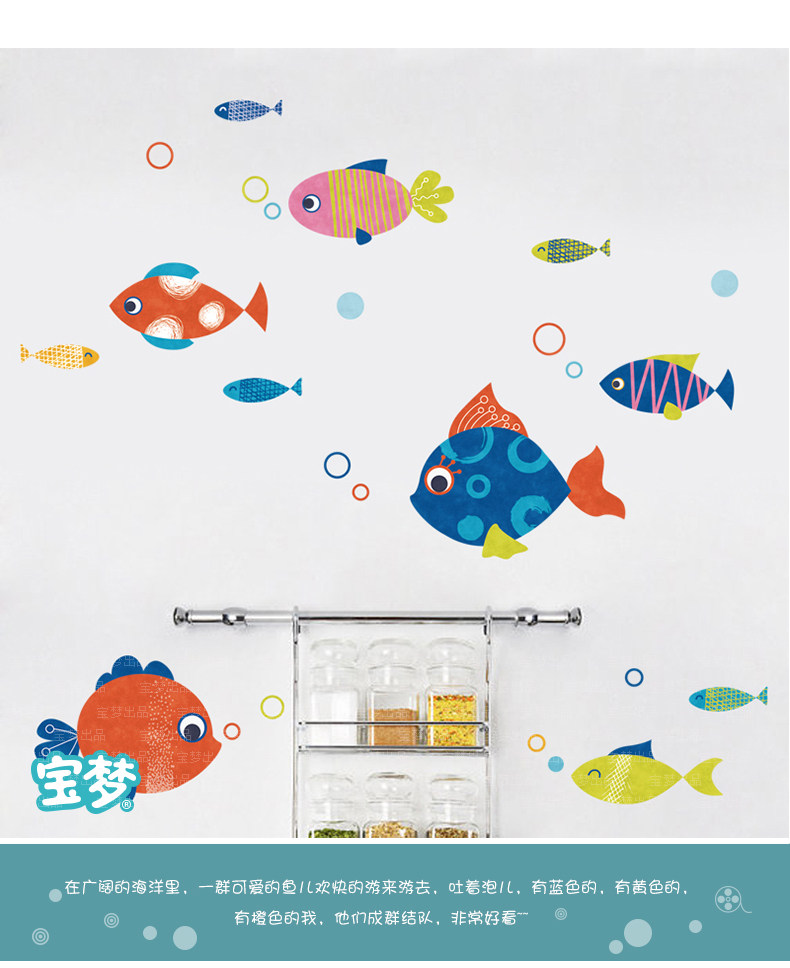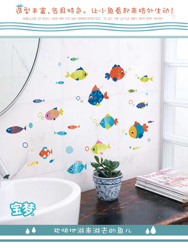 卡通卫生间浴室厨房装饰品墙贴纸可爱儿童房卧室彩色小鱼自粘贴画