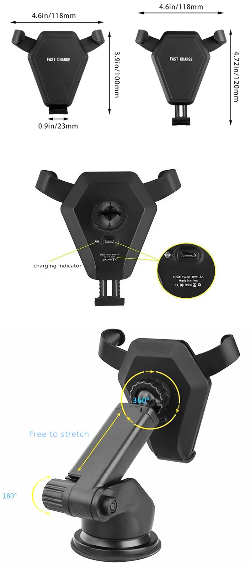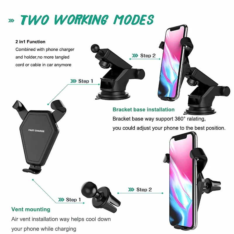 Feature2:Qi Standard Car Charger Stent Holder