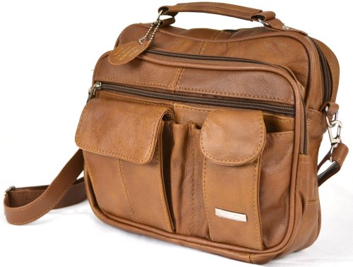 -. Title : Leather Travel Bag with Carry Handle, Detachable Shoulder Strap and Mobile Phone Pocket