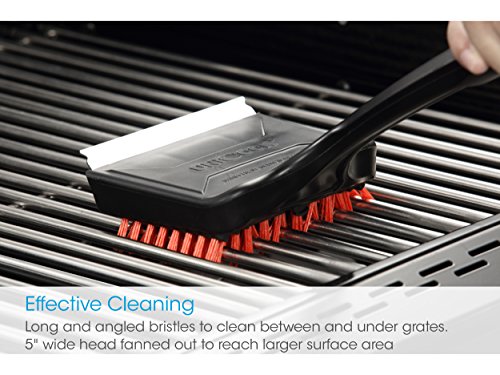 【Effective Cleaning】- 5" wider head clean larger surface area. The abrasive-infused and angled bristles clean between and under grates more effectively.