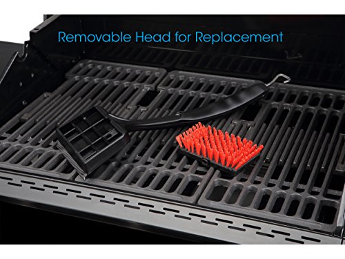 Unicook Premium Safe Nylon Grill Brush with Scraper, Heavy Duty Grill Cleaner, Best Alternative to Dangerous Wire Brush, Removable Head for Easy Cleaning and Replacement, Use on Cool Surfaces Only