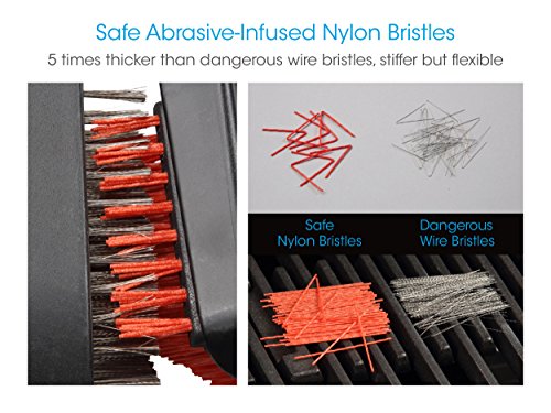【No More Injuries Risk for Grilling!】- The thin, sharp wire bristles grill brushes have potential risk of being ingested with the grilled food, causing injury and possible infection. Our thick and tough Nylon bristles are difficult to snap off, no risk of ingesting bristle.