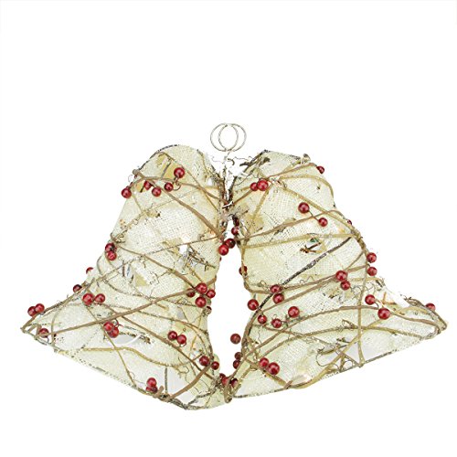 Northlight Lighted Burlap and Berry Rattan Double Bell Yard Art or Window Decoration, 19"
