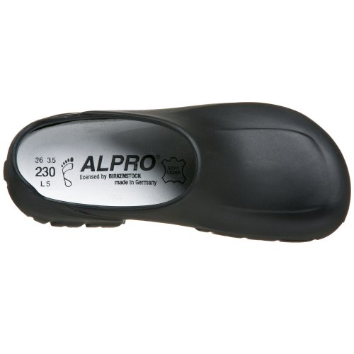 -. Binding : Apparel -. Brand : Alpro -. ClothingSize : * -. Color : Black -. Department : womens -. Feature : Made in Germany - Brand with the Tradition of Birkenstock since 1774 / Removeable footbed / cleanable up to 60°C / without steel toe cap / Comfort in two widths: (M)edium and (N)arrow -. Label : Alpro -. Manufacturer : Alpro -. Model : 10272-001 -. MPN : 10272 -. NumberOfItems : 1 -. PackageQuantity : 1 -. PartNumber : 10272 -. ProductGroup : Shoes -. ProductTypeName : SHOES -. Publisher : Alpro -. Size : 38 R US Men -. Studio : Alpro -. Title : Alpro A630 Clog