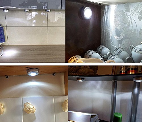 - EASY TO INSTALL AND STICK TO ANYWHERE - Twist the back of Light To change Batteries, Each light Powered by 3 AAA batteries(Not included) ;This Led light includes Super-strong 3M double-sided adhesive pads, just peel and stick to any surface.