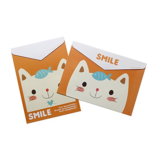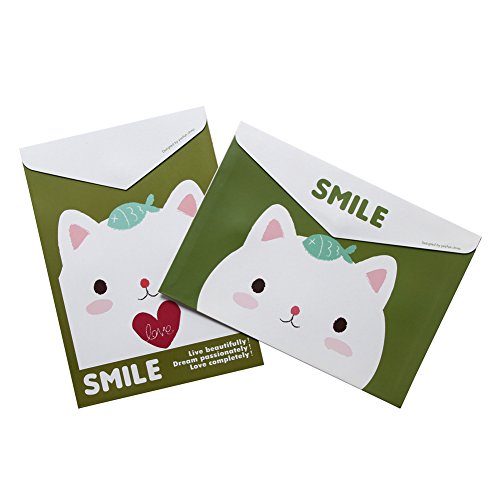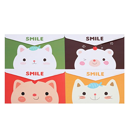 -. Feature : Durable manila material with envelope shape / Cute cartoon cat's smiling face pattern / A convenient velcro closure / Each set includes 4 horizontal opening sheets and 4 vertical opening sheets / Length: 31.2 cm (12.2") ,Width: 22.2cm (8.7"),