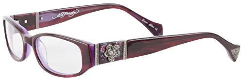 The Ed Hardy EHO728A Designer Eyeglasses is a hot stylish eyeglasses. This Ed Hardy eyeglasses features a rectangle plastic frame, clear plastic lens, Rhinestone Flower detail and Ed Hardy logo on temples. The Ed Hardy EHO-728A eyeglasses will give you that perfect finishing touch. Designer Ed Hardy eyewear are a sought after collection. Ed Hardy's elegance can be seen in every eye glasses. Authenticity Guaranteed or you get 100% of your money back.Feature