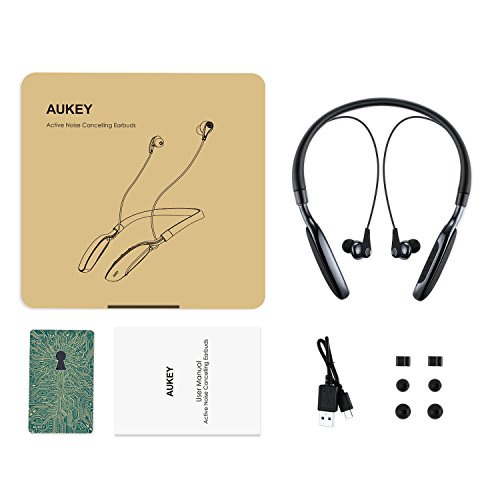 Package Contents: AUKEY EP-B48 Active Noise-Cancelling Earbuds, Micro-USB Cable, 3 Pairs of Ear-tips, User Manual, 24-Month Warranty Card