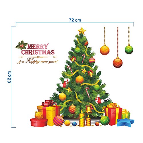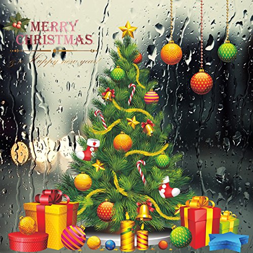 MLM Merry Christmas Bells Gifts Socks Wall Decals Christmas Tree Shop Window Removable Wall Stickers Shop Window Decorations Murals Removable DIY Home Decorations Art Décor